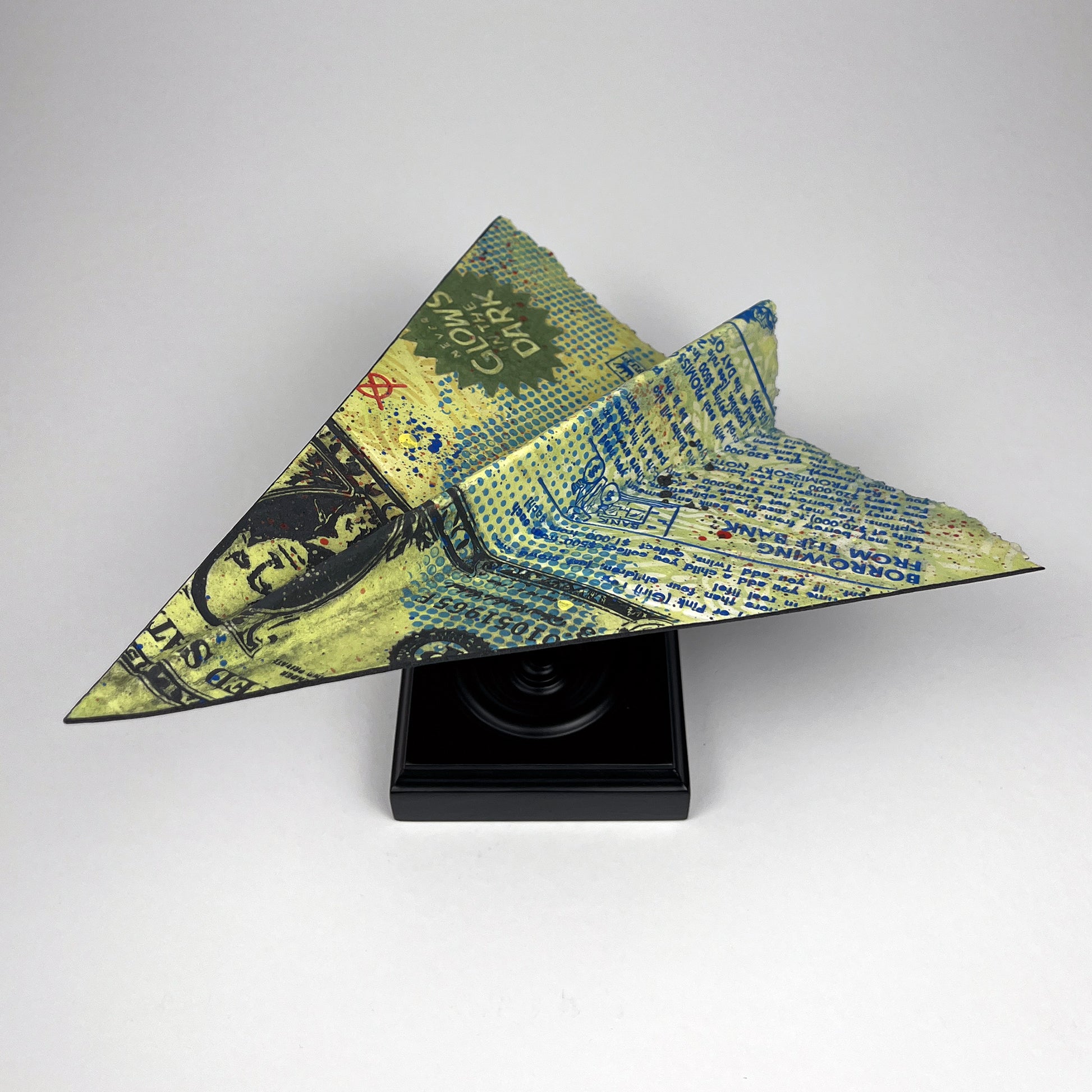 INSPIRATION: Like many boys, I played with plastic toy soldiers. There were the green army men, the plastic tanks and jeeps, and even a miniature flagpole. But no planes. I folded my own planes from paper. I decorated them with crayons drawing camouflage, insignia, and a pilot on the fuselage. Decades later, my brother Robert Fisher mentioned his series of paper hats in a New York gallery show. My mind shifted back to my childhood paper planes. This flashback began my exploration of the iconic paper plane.